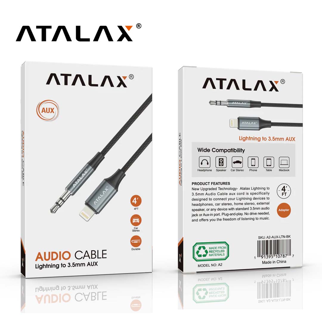 ATALAX A2 AUXILIAR CABLE LIGHTNING TO 3.5 MM