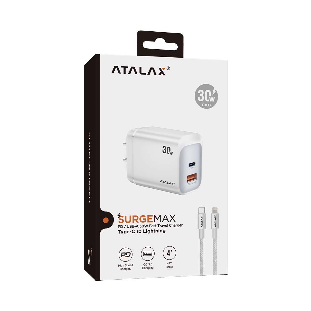 | ATALAX - SURGE MAX 30W HOME CHARGER | LIHGTNING, TYPE C |