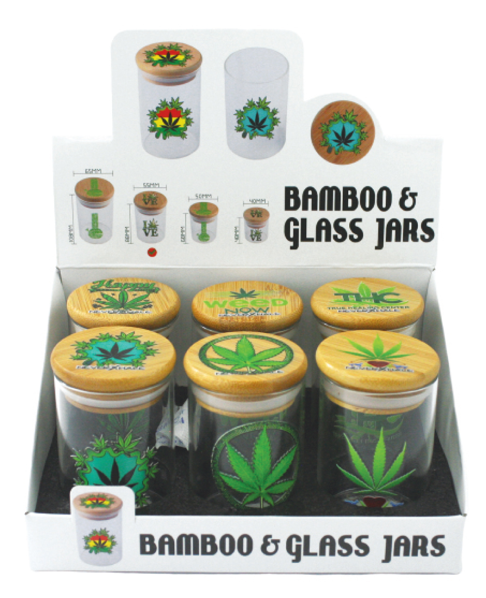 Large Glass Leaf Jars / W Bamboo Cap