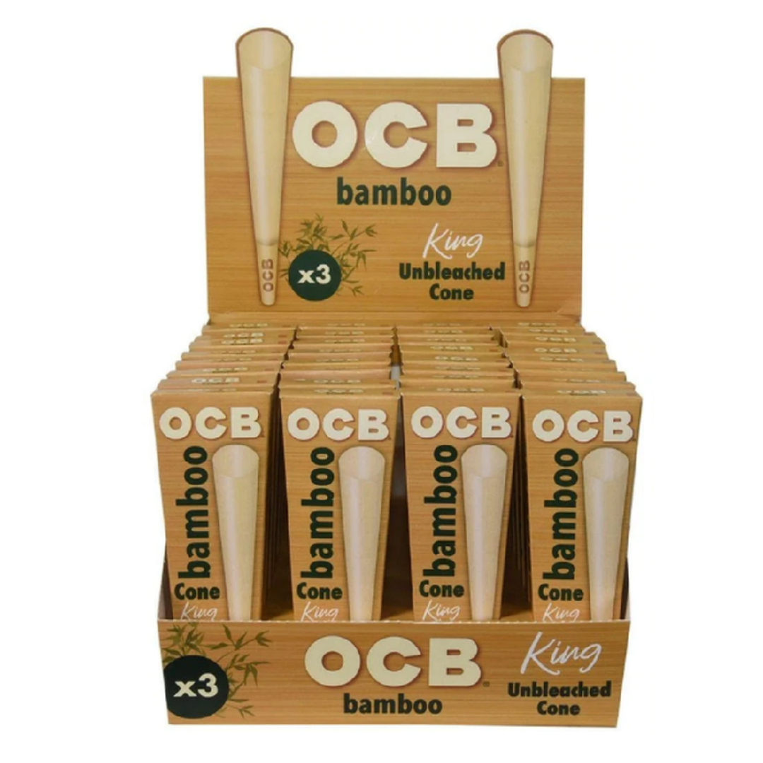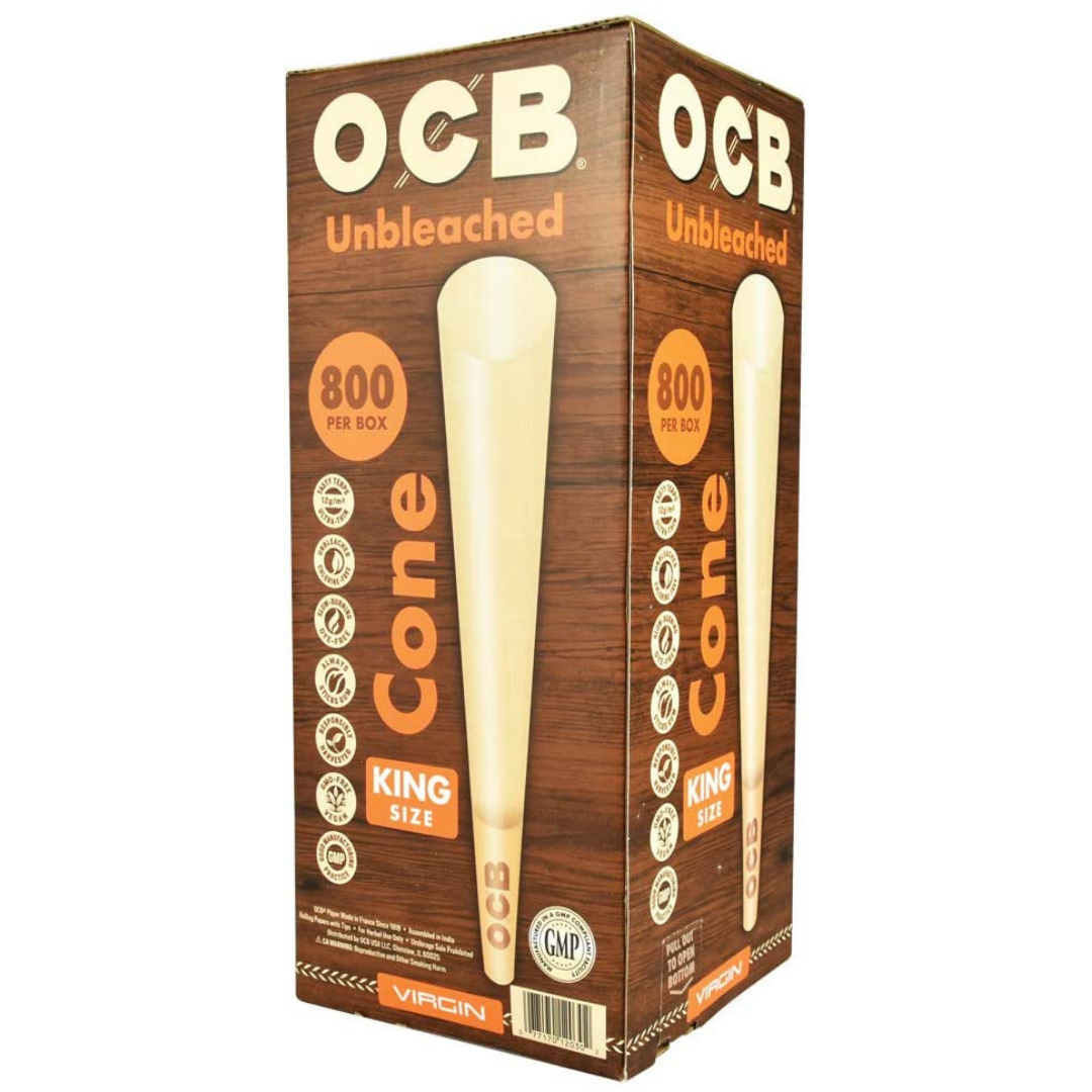 | OCB UNBLEACHED CONES | VIRGIN 1 1/4 SIZE – 32X6PK, VIRGIN KING SIZE 800 PER BOX, BAMBOO KING SIZE -32X3PK |